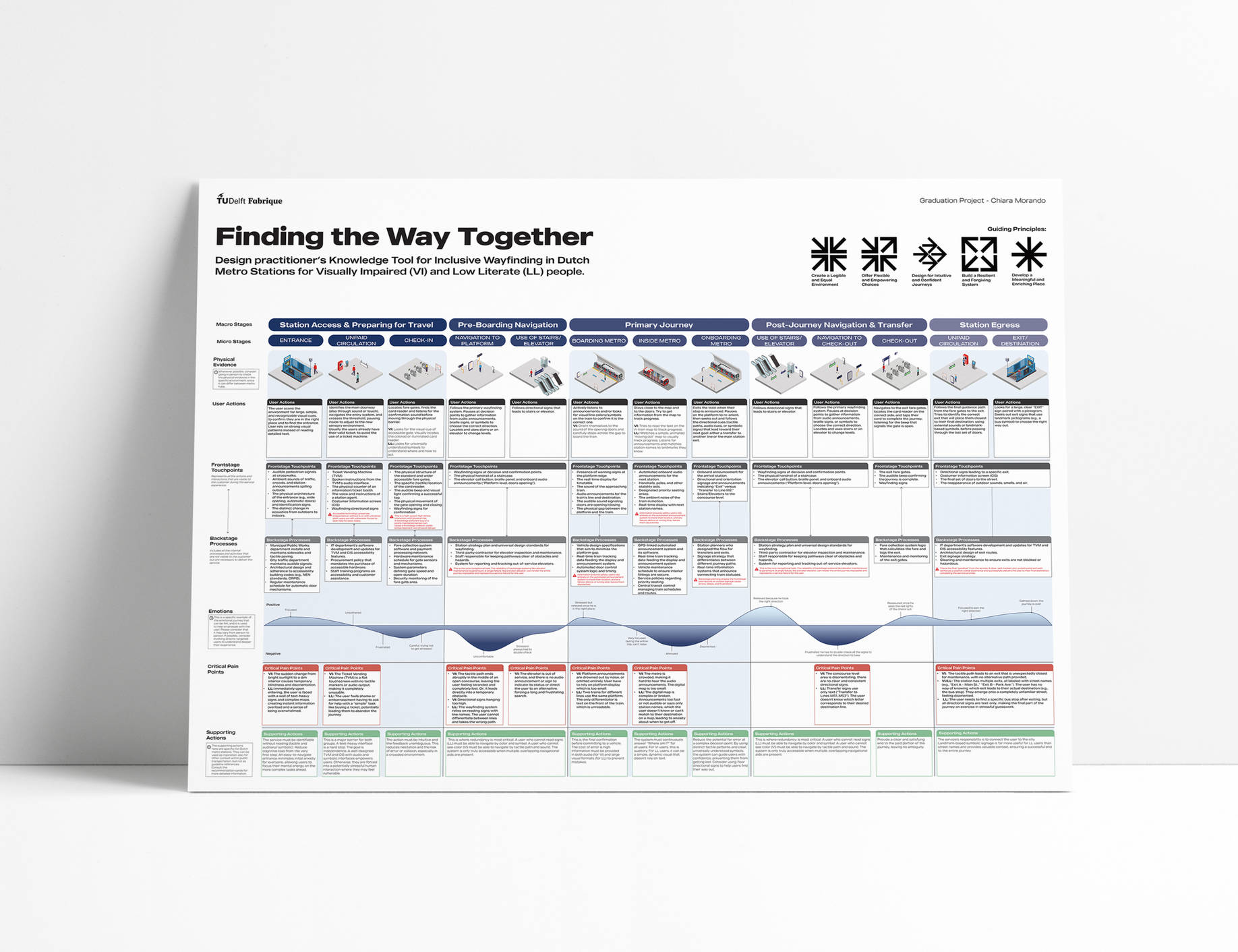 My thesis focuses on wayfinding in Dutch public transportation, specifically in metro stations. Within this context, I investigated how design practitioners can be supported in creating more inclusive wayfinding systems.